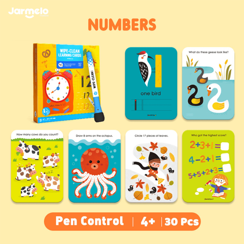 Wipe-Clean Learning Cards ของเล่นการ์ดเขียนลบได้ เผยแพร่ 03/04/2026 ที่ 800 × 800 ใน Jarmelo ชุดการ์ดความรู้คู่ปากกาเขียนแล้วลบได้ Wipe-Clean Learning Cards ชุดการ์ดเขียนลบสำหรับเด็กอายุ 4 ปีขึ้นไป มี 30 ชิ้น เหมาะสำหรับเสริมสร้างทักษะคณิตศาสตร์และภาษาอังกฤษ. ภาพแสดงชุดการ์ดเรียนรู้ลบเขียนลบได้ พร้อมกล่องเก็บและปากกาเขียนลบสำหรับเด็กวัยเรียน. ← Previous Next →