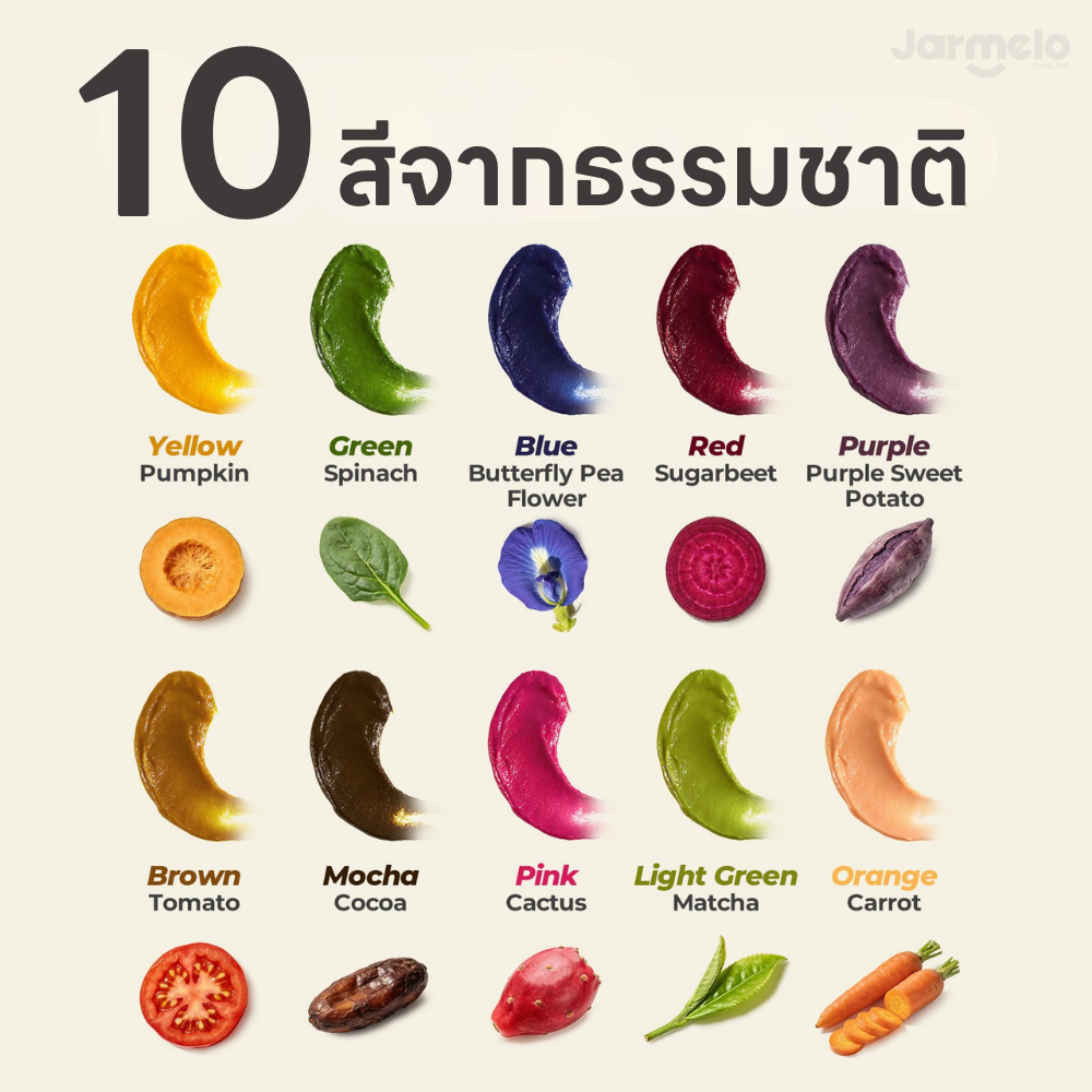2️⃣ ขนาด 10 ถุง 10 เฉดสีจากผัก (1 ถุงสามารถผสมได้ถึง 260 มล.) :
