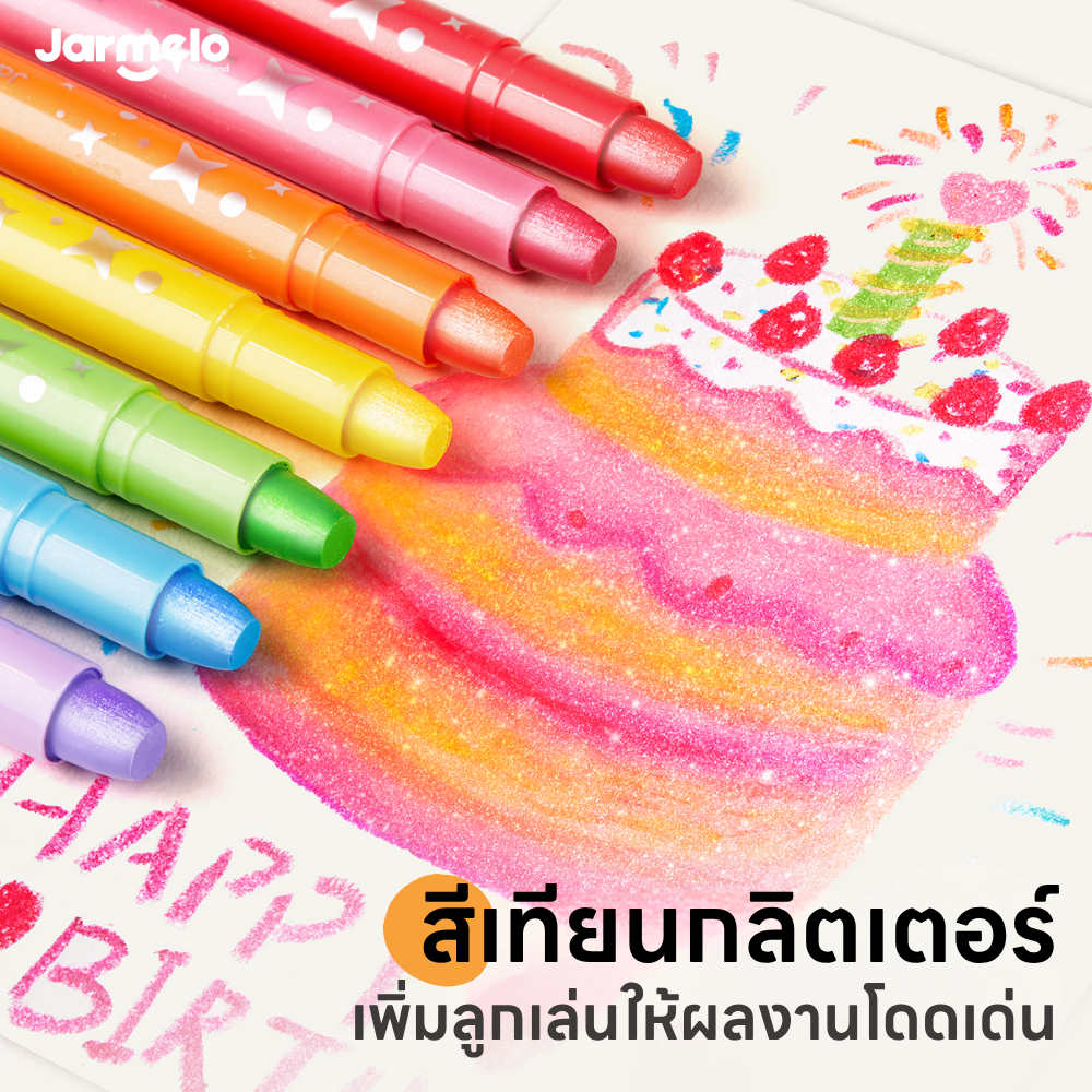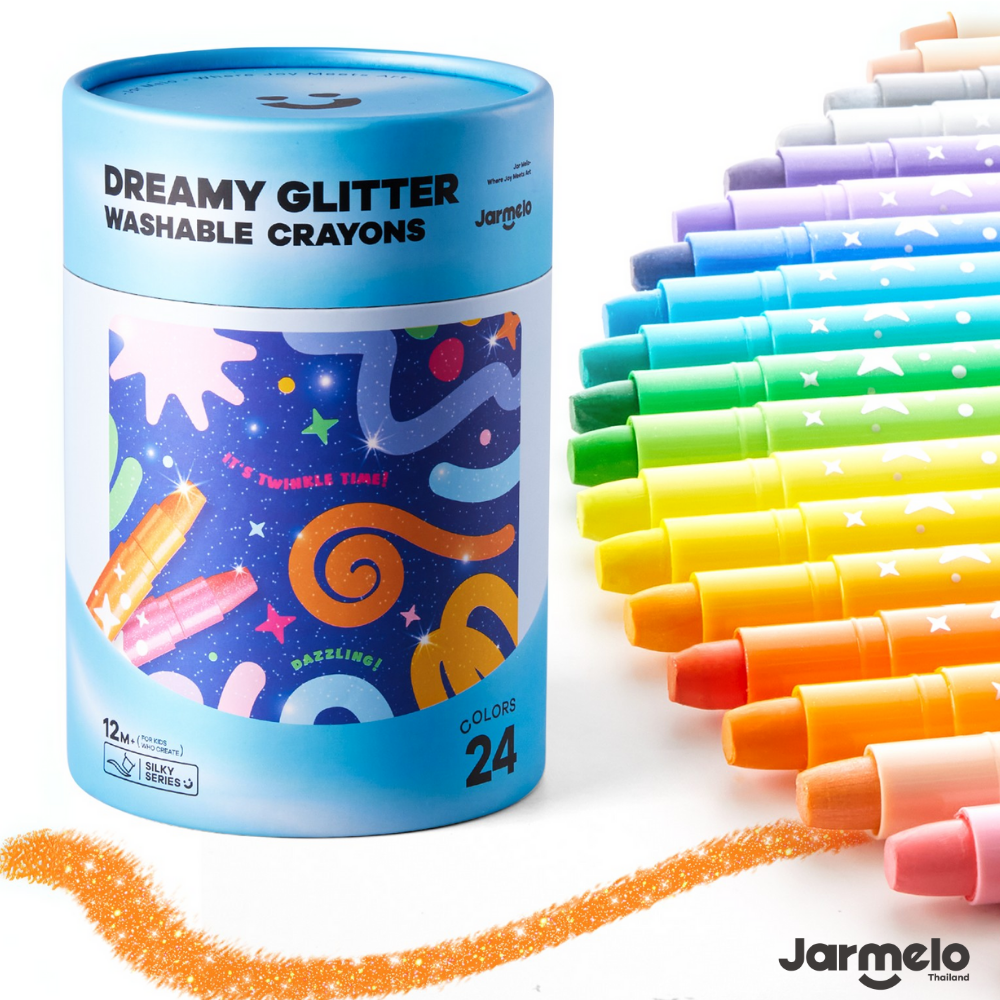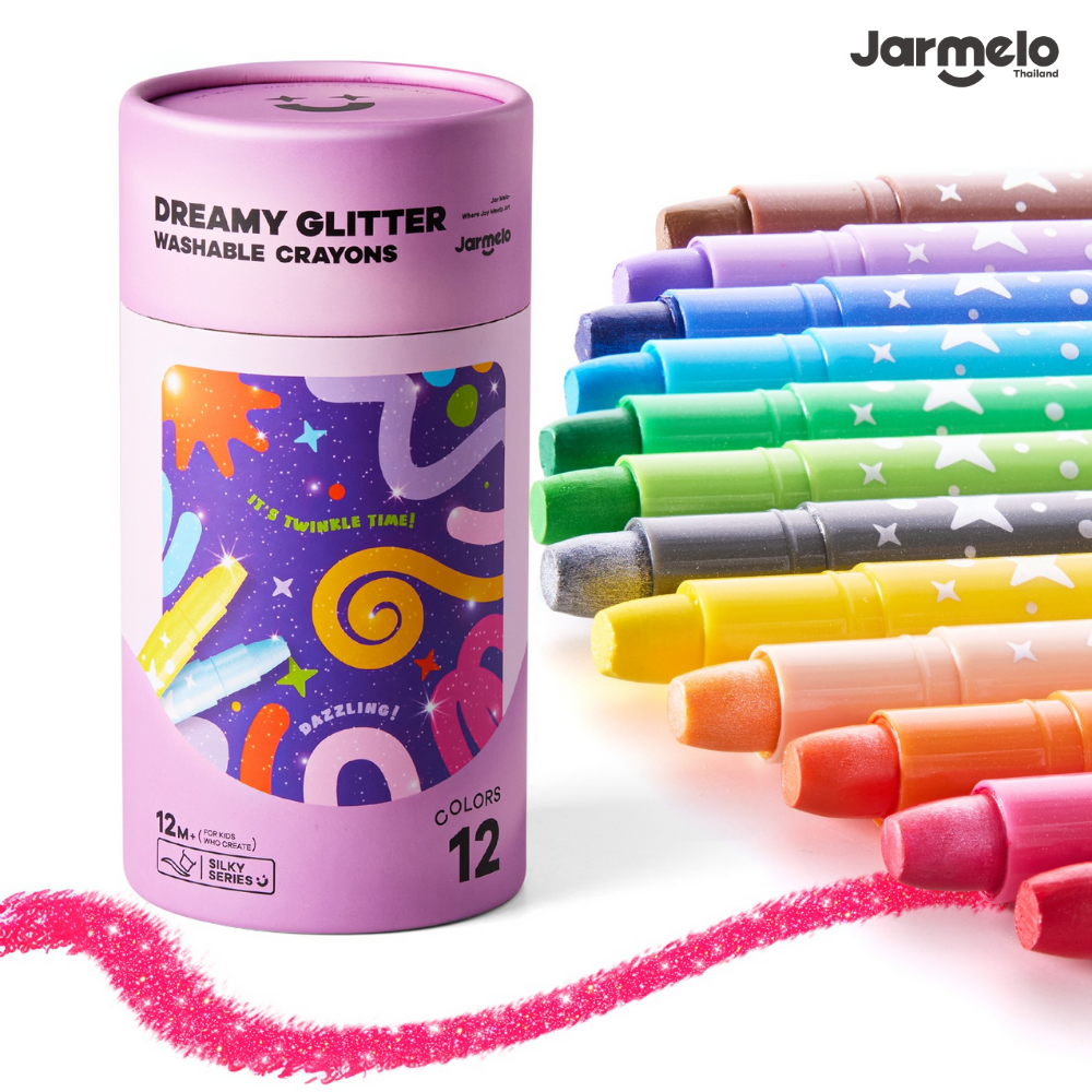 Joan Miro สีเทียนสำหรับเด็กเล็ก Dreamy Glitter Washable Crayons ” สีเทียนกลิตเตอร์ ” สีเทียนปลอดสารพิษล้างออกง่าย