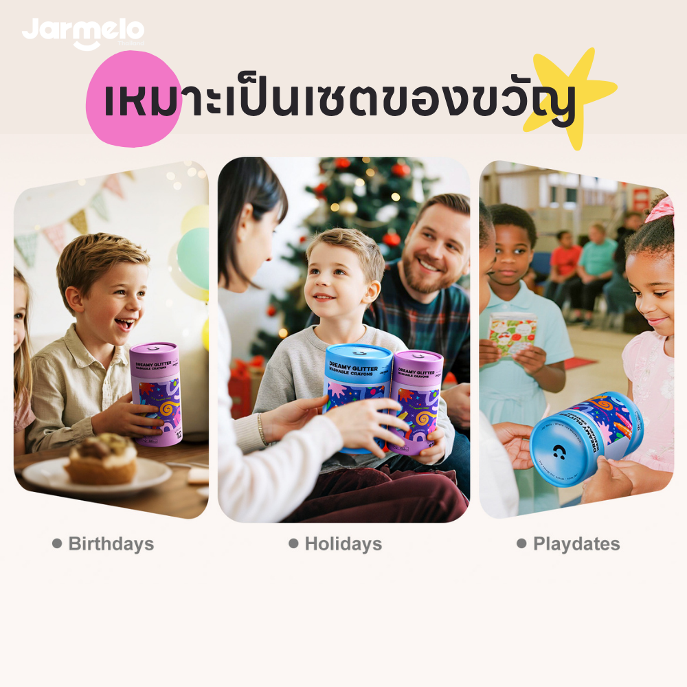 • สีสวย กลิตเตอร์ชัด ช่วยกระตุ้นประสาทสัมผัสและจินตนาการได้อย่างเต็มที่