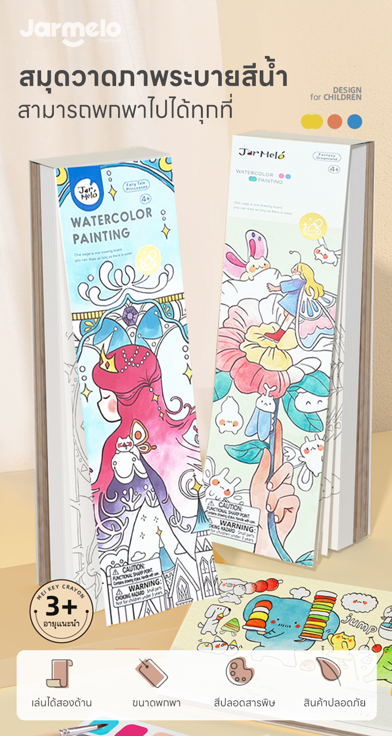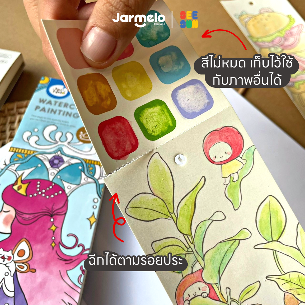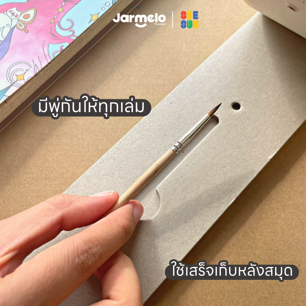 ✅ สีแห้งไว ไม่ต้องกลัวเลอะเทอะ มีช่องเก็บพู่กันให้ท้ายเล่ม